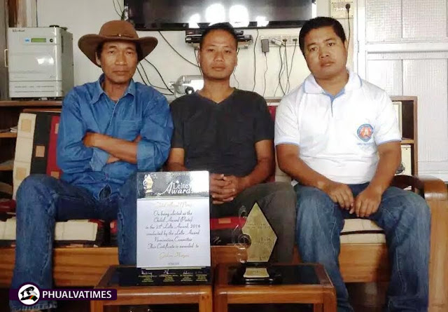 LAMKA, May-7 (PhualvaTimes) : Lelte Award 2016 (Chibil) ngahtu Mr. Ginlian Hangzo of Mata, Lamka in Award(Trophy) alak, tuni'n Zogam Artistes Association (ZAA) khut a latkhiakna(dedication) vanei a, huai hunah ZAA President, Pu T. Thangthuam leh Secretary Pu Siam Vaiphei te'n kipahpihthu gen uhi. ZAA member Mr. Ginlian Hangzo in Award alakte Zogam Artistes' Association(ZAA) ngaina a makaite tawh hun azatkhawmna kipahpihthu leng ZAA makaite'n gen uhi.
